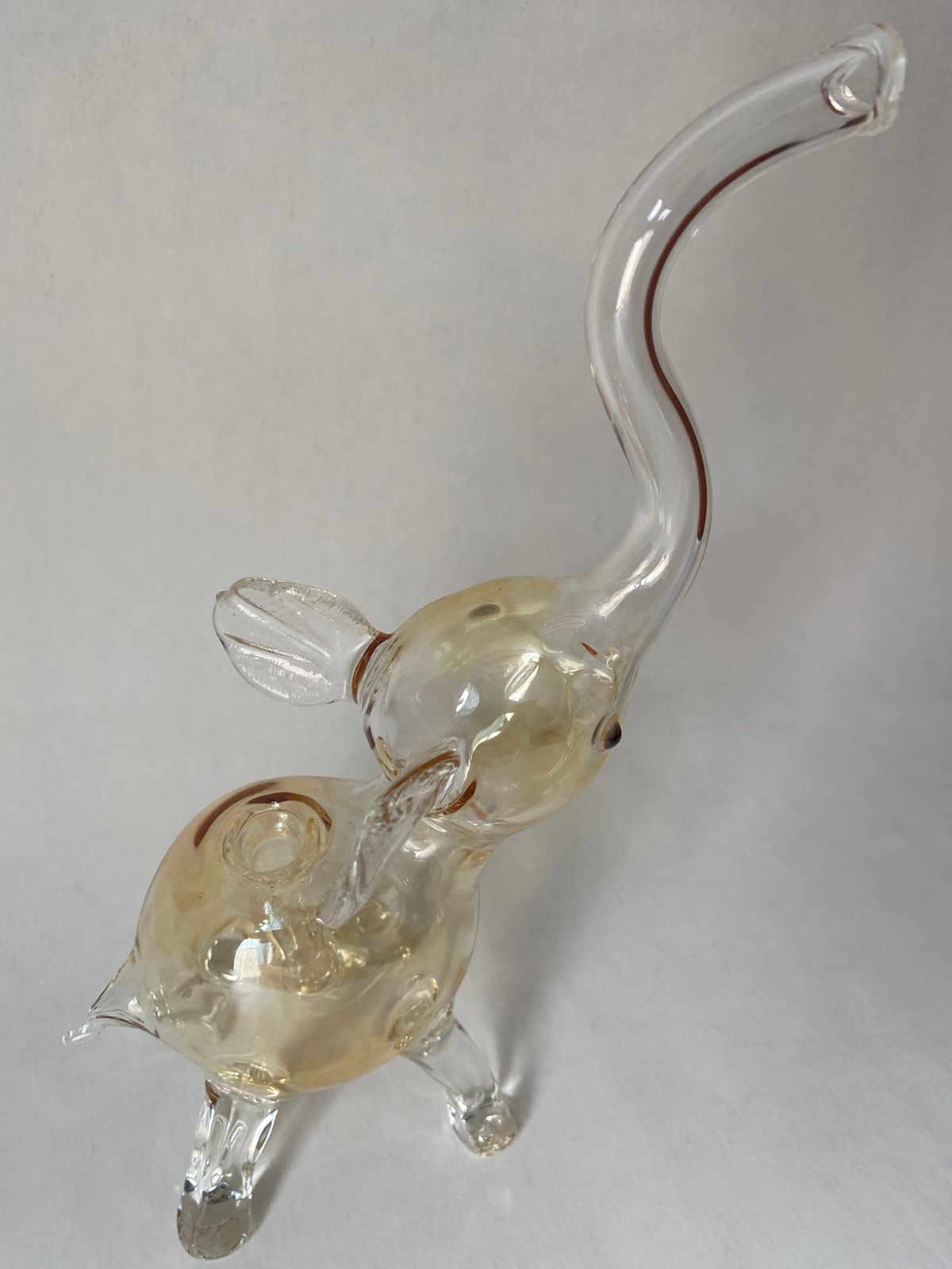 Hermoso elefante soplado en Borosilicato con técnica fuming en plata.