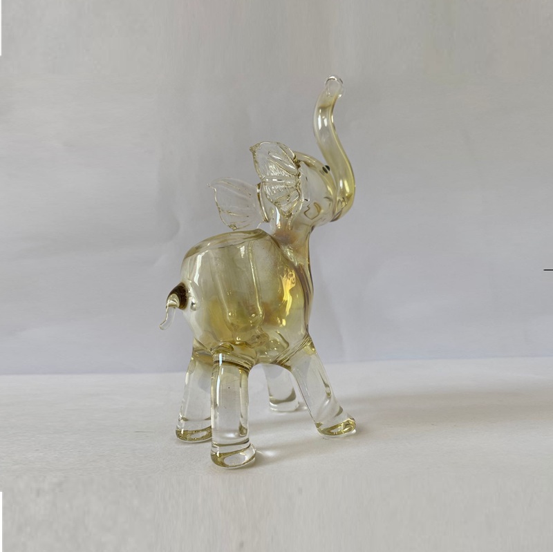 Hermoso elefante soplado en Borosilicato con técnica fuming en plata.
