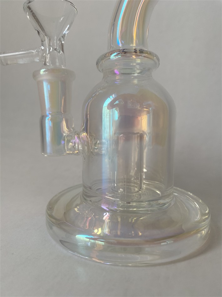 El Mini Rig Fat Line Tornasolado es una pieza versátil y estilizada, perfecta para disfrutar tanto de flores como de extractos. Con una altura de 15 cm, su tamaño compacto lo hace fácil de manejar y transportar. Cuenta con una salida de 14 mm y un ángulo de 90 grados, permitiendo una conexión estable con accesorios como bangers o bowls. Su diseño tornasolado resalta con reflejos de colores vibrantes, dándole un toque moderno y atractivo. Fabricado con vidrio resistente, garantiza una gran durabilidad y una experiencia de uso óptima. Su estructura facilita una filtración eficiente, asegurando caladas suaves y placenteras. Ideal para quienes buscan estilo y funcionalidad en una sola pieza. Se entrega en una caja para mayor protección y presentación.