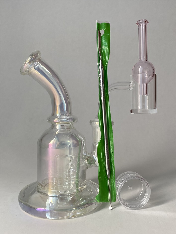 El Set Rig In line Head 710 es una opción completa y sofisticada para los entusiastas de los dabs concentrados de cannabis. Su rig tornasolado no solo es visualmente atractivo, sino que también garantiza durabilidad y funcionalidad. Con un banger flat de alta calidad, el calor se distribuye de manera uniforme para una experiencia de dabbing suave y sabrosa. El carb cap vortex añade un toque adicional al controlar el flujo de aire y preservar los sabores. Las terp pearls incluidas no solo mejoran la dispersión de los concentrados, sino que también ofrecen una experiencia más completa.